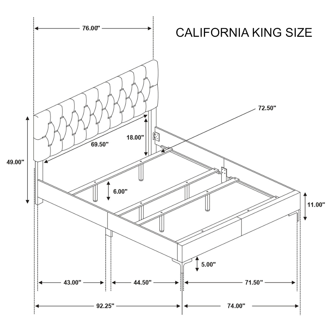 CALIFORNIA KING BED: 76" W x 92.25" L
