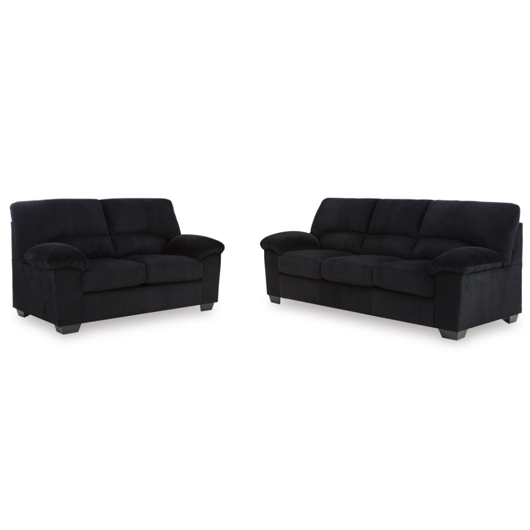 This living room set is a cozy interpretation of casual contemporary style. Its super-soft corduroy makes curling up with a book or your favorite show that much more comfortable. You're sure to appreciate its sincere styling and homey approach to relaxation.